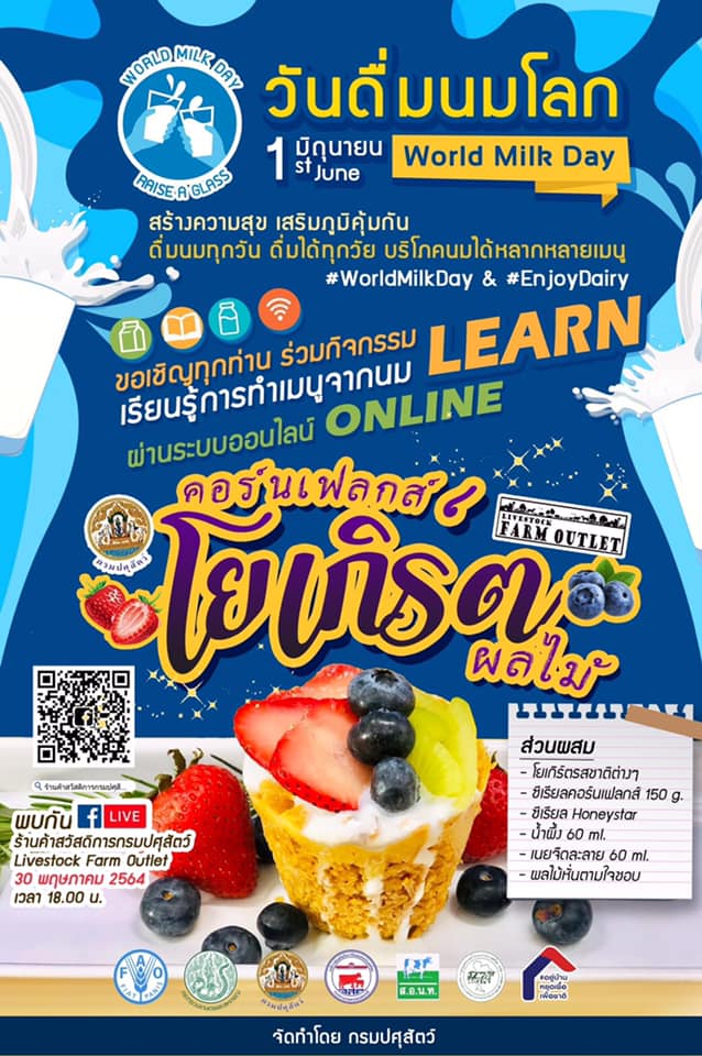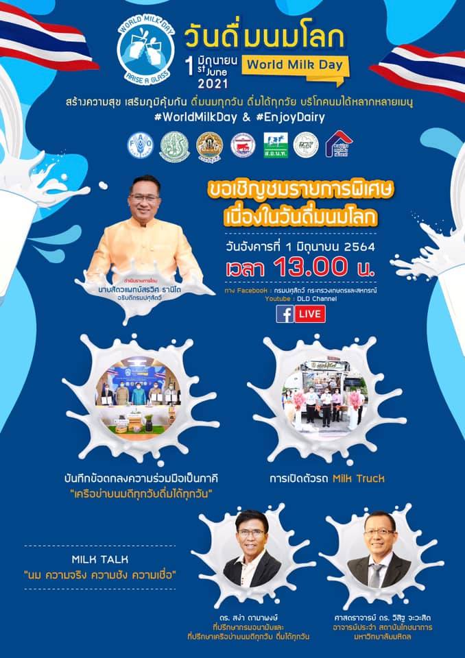 Many activities have been jointly organized to celebrate the “World Milk Day” throughout Thailand in great collaboration among government agencies, dairy farmers’ associations, dairy cooperatives, private sectors, dairy processors’ associations, and local authorities. In Thailand, the campaigns and activities have been held for a month to focus attention on milk and raise awareness of dairy’s part in healthy diets, responsible food production, and supporting livelihoods and communities.